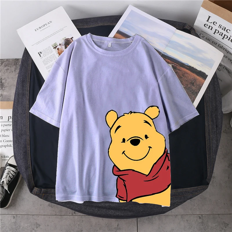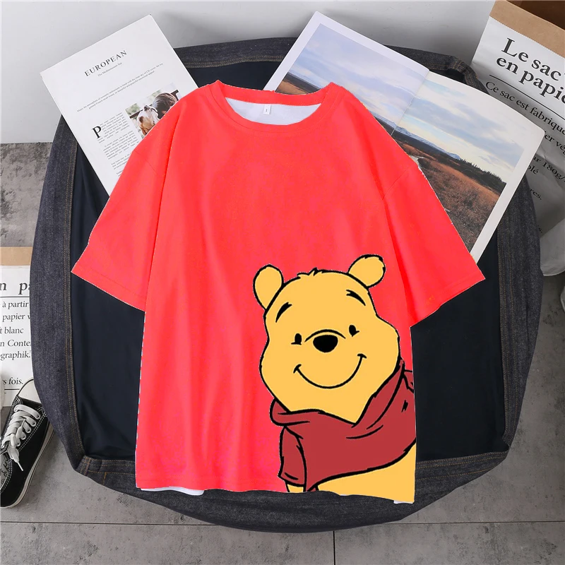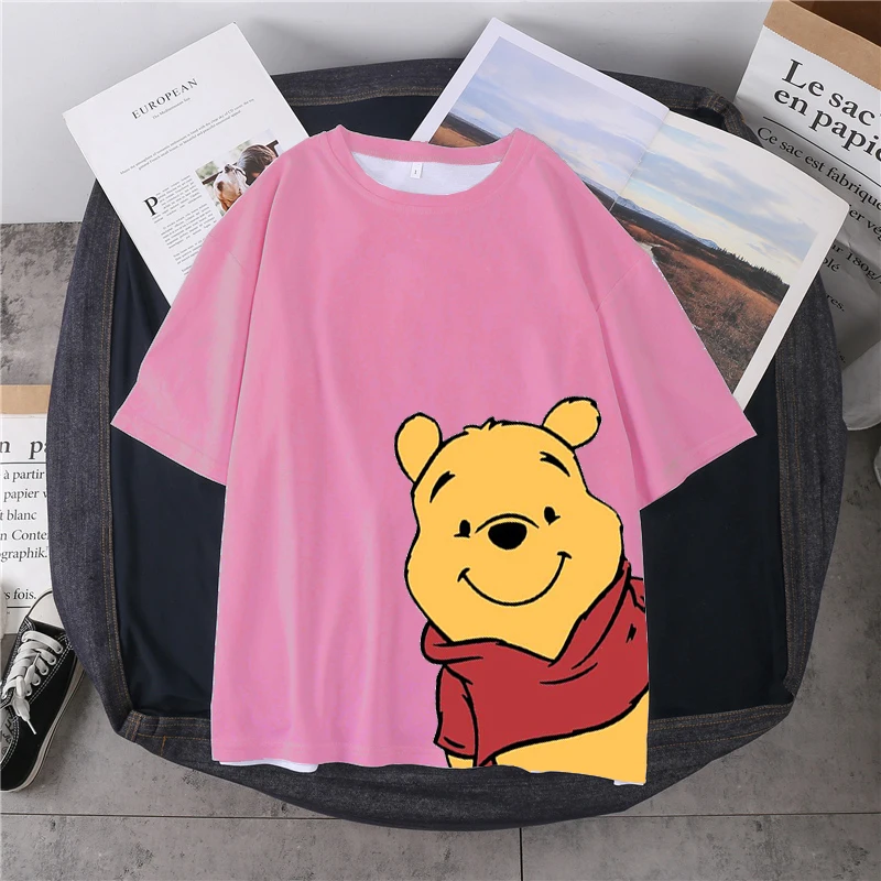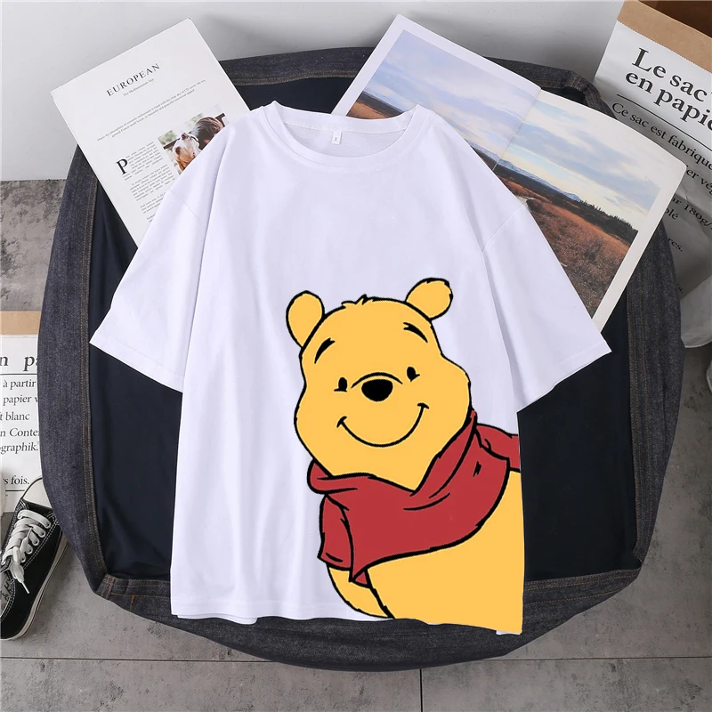Женская футболка с 3D принтом Disney в стиле Харадзюку, повседневный летний топ с мультяшным принтом медведя, Женская свободная футболка, милая футболка, топ