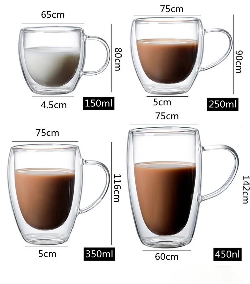 Прозрачная стеклянная кофейная кружка с двойными стенками, термостойкая стеклянная кружка с кристаллами, кружка для молока, подарок для детей и взрослых, 150 мл250 мл350 мл450 мл