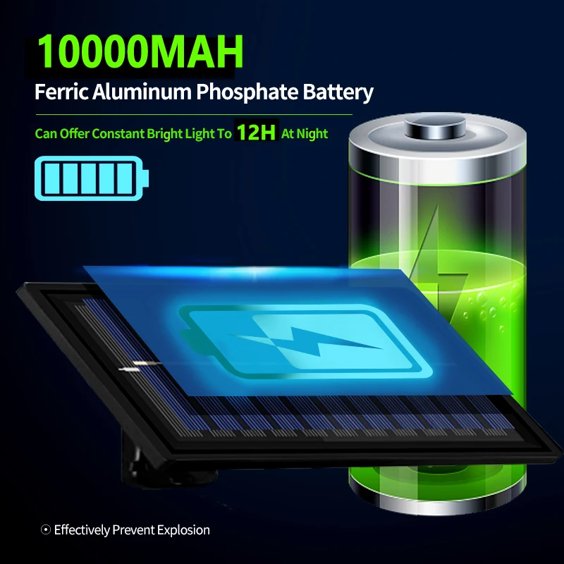 Особенности этой солнечной лампы [Солнечная энергия и солнечная панель]: это питание от солнечного света в дневное время с солнечной панелью и хранит энергию для ночного освещения со встроенной литиевой батареей, освещение в темноте и выключение в восходе солнца, легкий и удобный в использовании, энергосберегающий. [Автоматическое управление освещением при темноте]: высокая яркость 20/40/60/80 белых/теплых светодиодов автоматически загорается при ночном падении, обеспечивающая подсветку на всю ночь один раз полностью заряженная в течение 3-11 часов под прямыми солнечными лучами. [Встроенный аккумулятор]: Встроенный высокоэффективный литиевый аккумулятор 3,7 в 10000 мАч, непрерывная Выдержка в течение 6-8 часов 【 120 широкоугольное освещение 】: модернизированные мощсветодиодный светодиодные лампы SMD и 120 широкоугольное освещение, обеспечивающие сверхяркую освещенность для широкой площади. [Экологичность и энергосбережение] высокоэффективное Преобразование солнечной энергии, улучшенное Энергосбережение и защита окружающей среды.