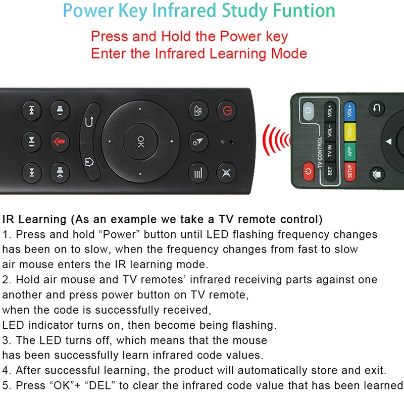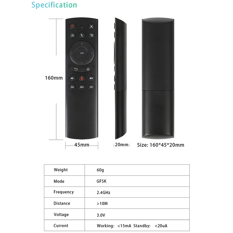 Характеристика-2,4 ГГц Беспроводной подключение: 2,4 ГГц Беспроводной соединение через usb-приемник, подключи и играй, вы можете боди с принтом «snuggle на диване и пользуются большой дальности Беспроводной контроль на расстоянии до 10 метров.-Голосовое управление: нажмите кнопку «Голос» на пульте дистанционного управления для поиска канала, который вы хотите увидеть, прост и удобен в использовании.-Встроенный 6-осевой гироскоп: Эта воздушная мышь может ощущать изменение направления и скорости, так что вы можете перейти прямо в воздухе, чтобы контролировать его.-Эргономичный дизайн: Arc дизайн на задней части воздушной мыши, идеально подходит для вашей ладони, обеспечивая удобный ручной опыт.-Удобно в использовании: 18 клавиш, воздушная мышь, легко управлять громкостью, страница вверх/вниз, мышь использовать влево/вправо и т. Д. Просто сидеть на диване и наслаждаться.