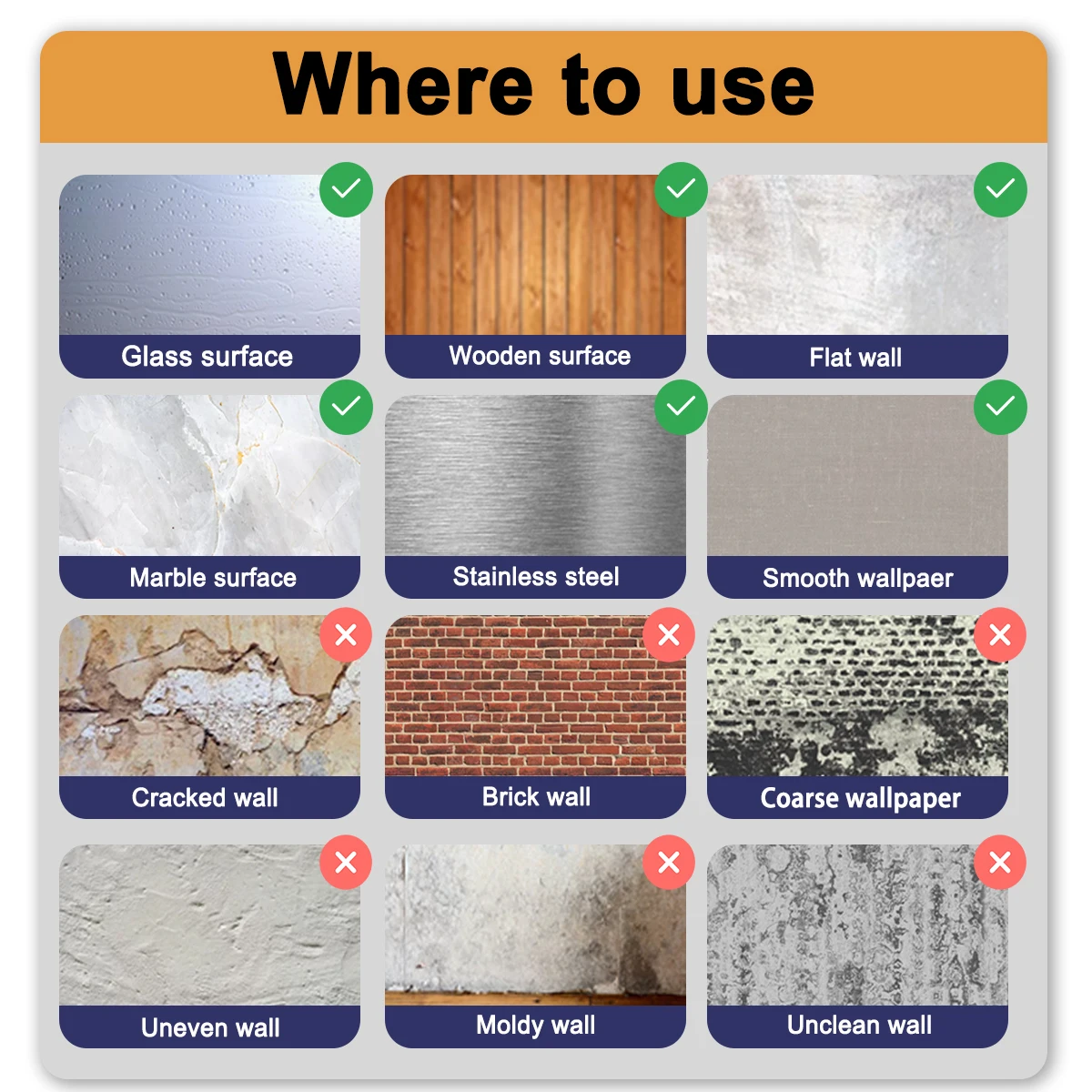 1. Убедитесь, что поверхность, которую нужно прикрепить, является гладкой поверхностью и что есть конвекции, сотканы и морщины. Не прилипайте.