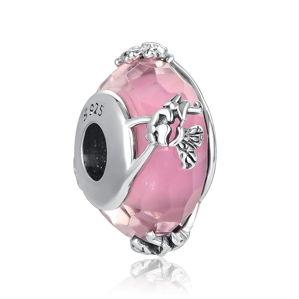 Новый стиль 925 пробы серебряные розовые лепестками, платье-бабочка в форме сердца циркониевые Бусины Подходит для оригинальный Пандора браслет из бисера