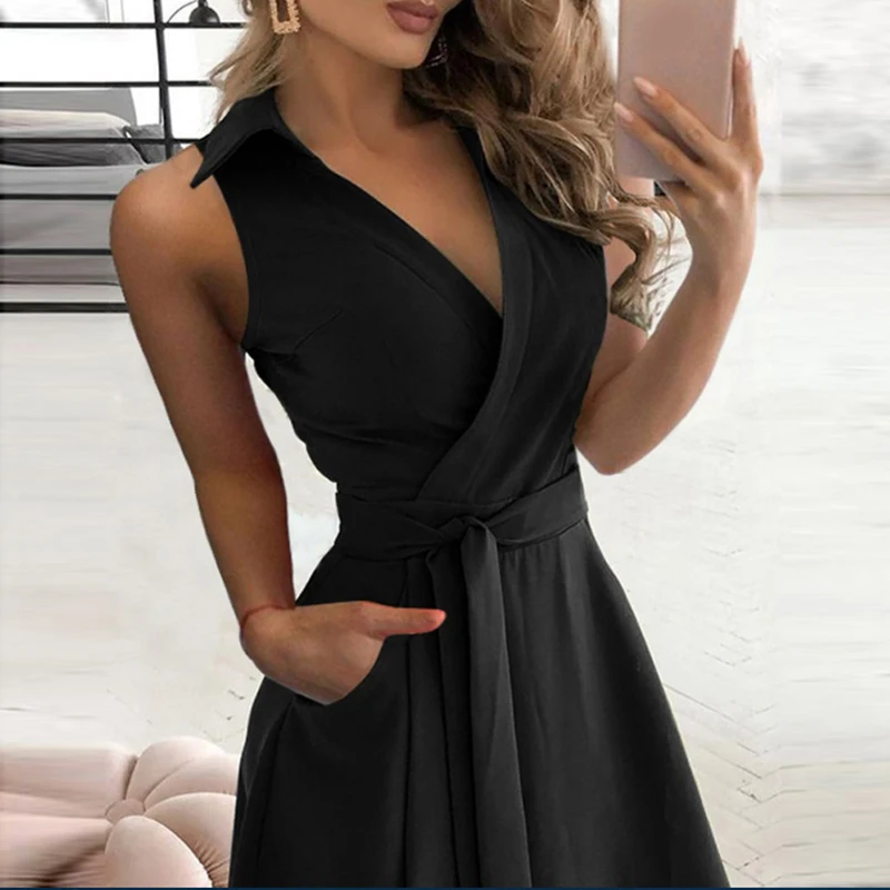 Женское однотонное офивечерние ное вечернее платье, винтажное обтягивающее платье без рукавов с V-образным вырезом, лето