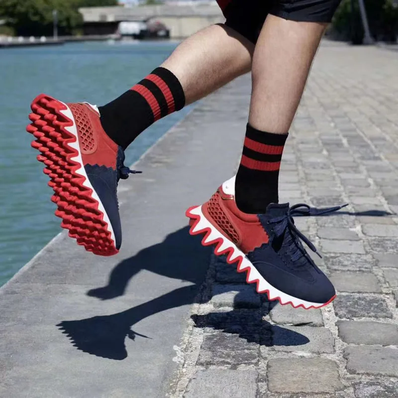 Новая мужская повседневная обувь с красной подошвой, с заклепками, модная кожаная женская повседневная обувь на плоской подошве, для любителей вечерние, EU36-45