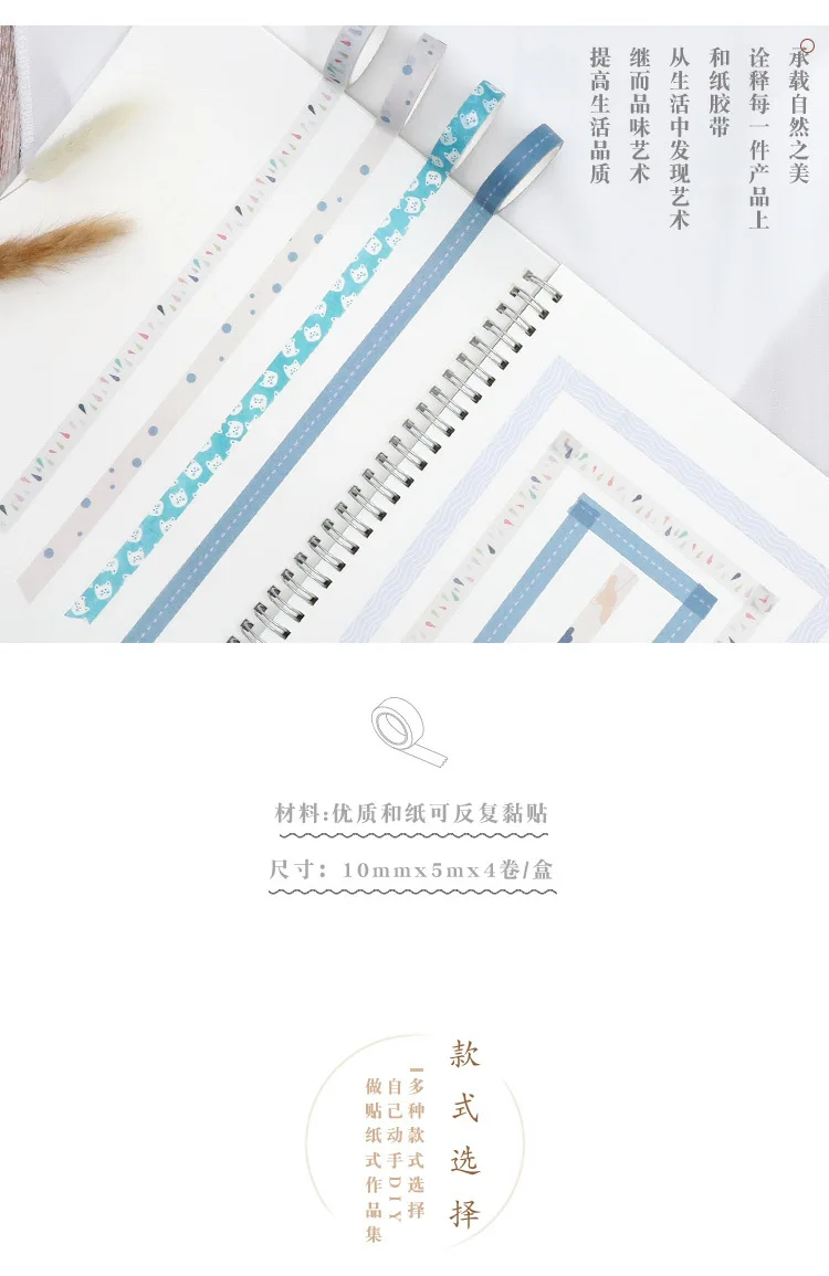 Голубой Kawaii канцелярских принадлежностей в цветной горошек клейкой ленты пуля журнал Тетрадь наклейки Дети DIY Декоративные Дневник в стиле Скрапбукинг
