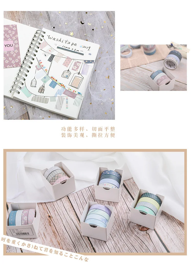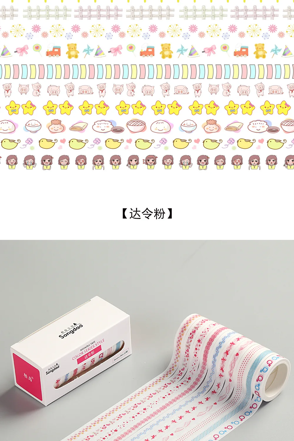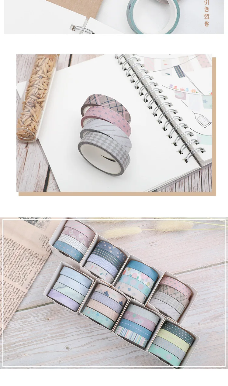 10 рулонов в коробке, базовый цвет, набор ленты Wasi, украшение для...
