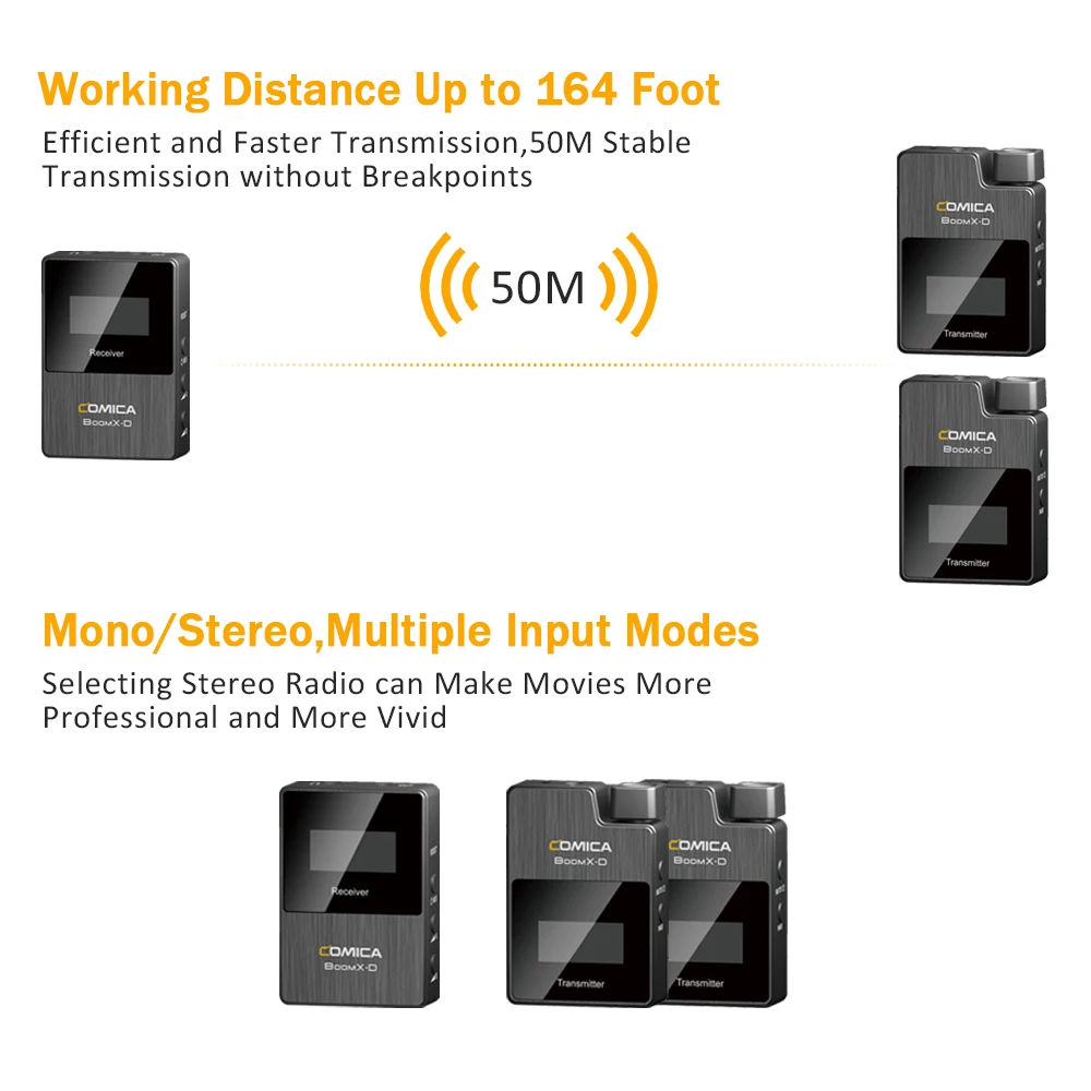 Микрофон COMICA BoomX D2, беспроводной, компактный, цифровой, 2,4 ГГц