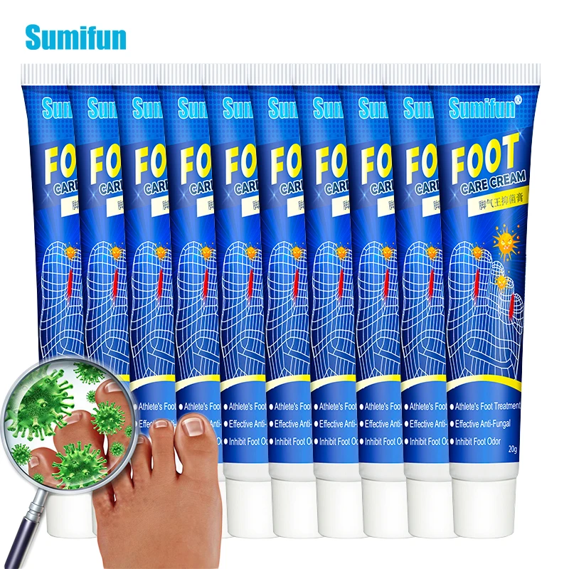 Название продукта: Sumifun крем для ухода за ногамиПосылка:10 шт. без коробкиСпецификация: 20 гСрок: 2 годаЭффективность: зуд для ног, запах ног, шелушение, блистер, уход за ногамиПрименение: все типы кожиИспользование: Актуальное, после очищения нанесите необходимое количество равномерно на пораженный участок и нежное на мгновение, чтобы полностью впитать, 2-3 раза каждый день!