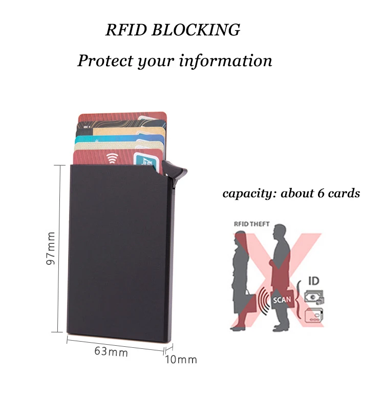 С функцией блокировки RFID анти-кражи кредитной карты держатель для ID карты Чехол унисекс автоматически Pop up Металл Мини Бизнес кошелёк для банковских карт
