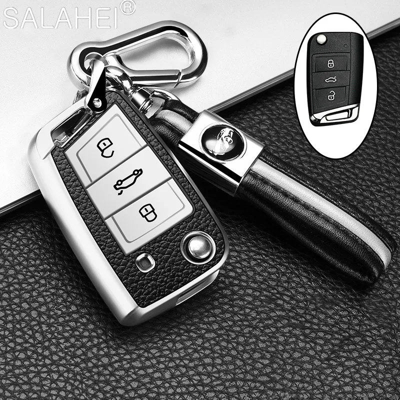 Кожаный + ТПУ чехол для автомобильных ключей для VW Volkswagen MK7G...