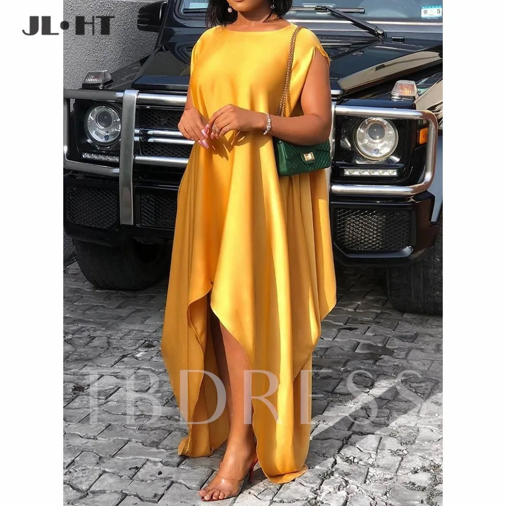 Вечерние платья, Длинные атласные платья-трапеции золотого и желтого цветов, с коротким рукавом, асимметричное, для выпускного, 2021