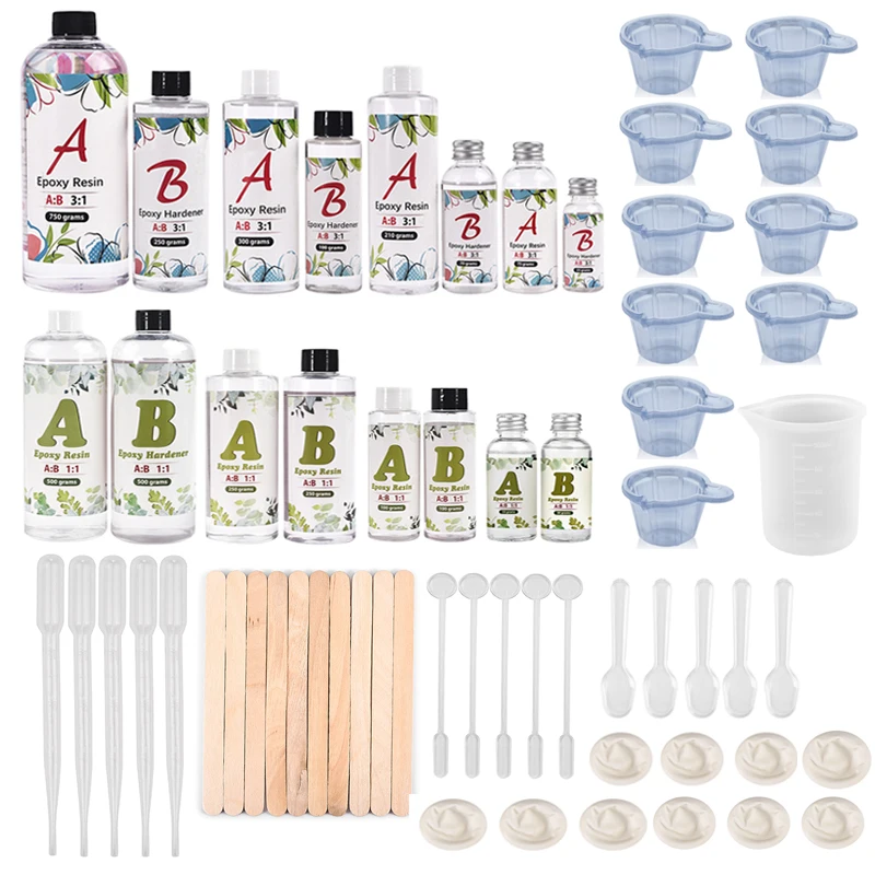 Набор из прозрачной эпоксидной смолы 1:1 AB, клей, формы для смолы, инструмент для изготовления ювелирных изделий, стартовый набор, силиконовый мерный стакан, палочка для перемешивания