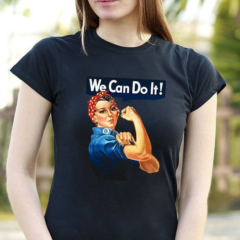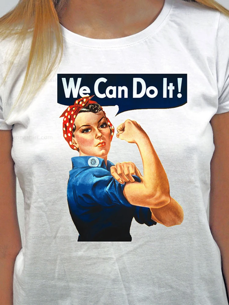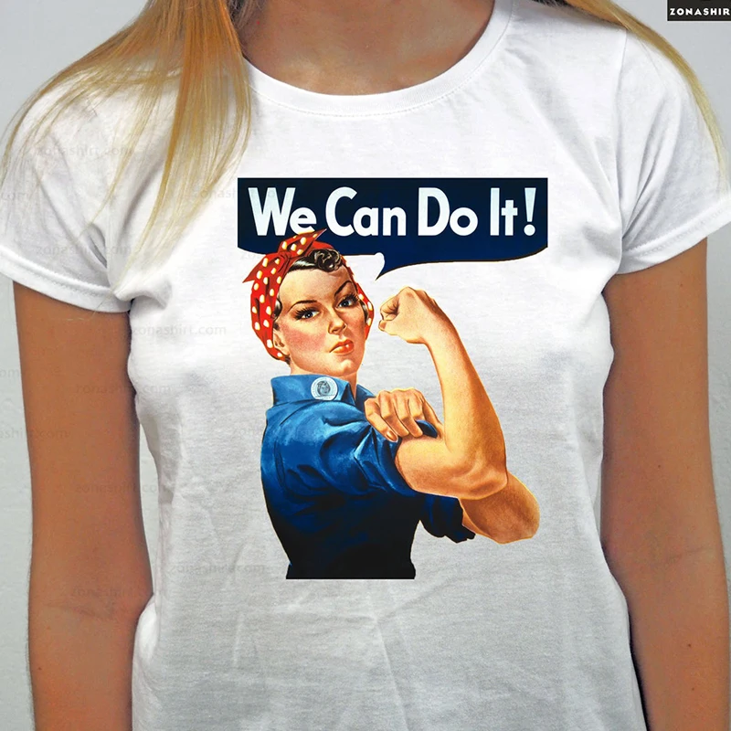Винтажная футболка с коротким рукавом FM Rosie We Can Do It Geek, женская футболка Fraley ROSIE THE RIVETER Feminism, Прямая поставка