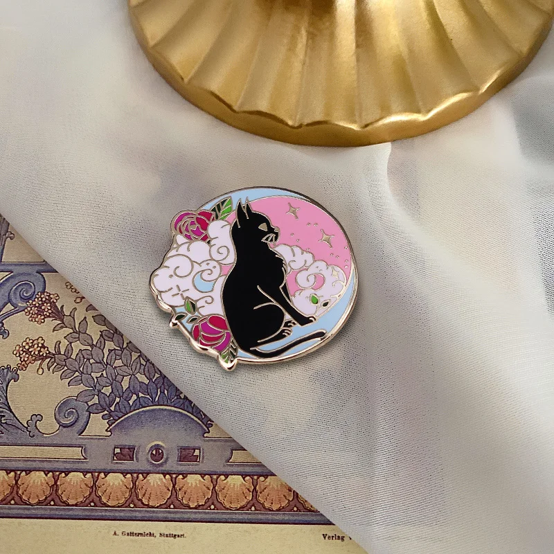 Эмалированная брошь в виде черного кота, цветка, булавки, значки, б...