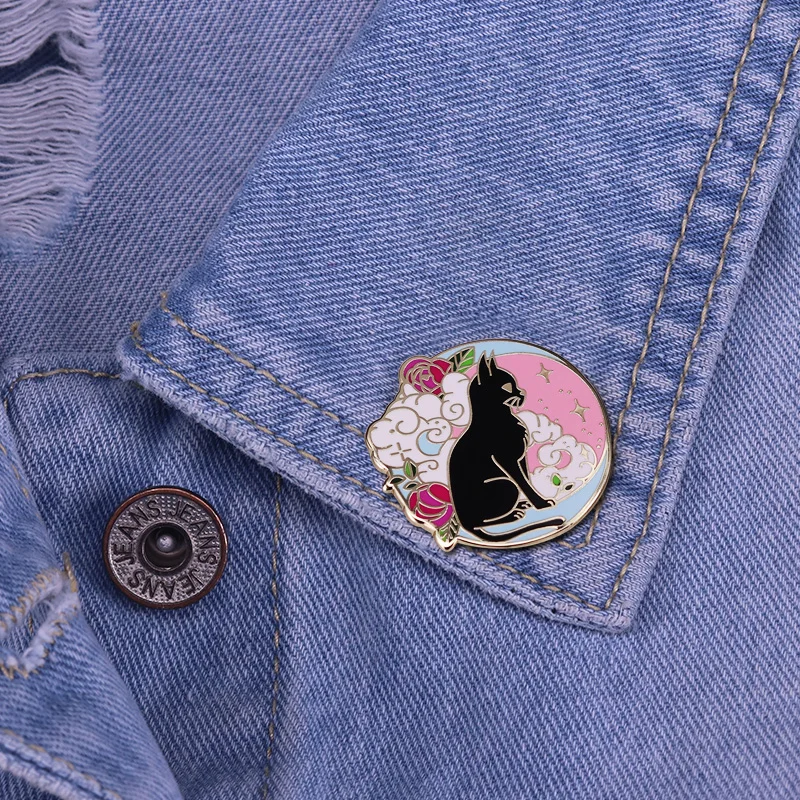 Пастель звездного неба Луны и нижнее белье с милыми цветами значок с изображением кота брошь