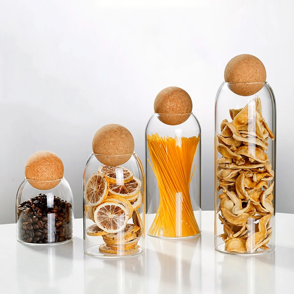 Стеклянная банка из пробки с открытым шариком, без свинца, с крышкой, емкость для хранения бутылок, герметичные чайные банки, зерновые прозрачные банки для хранения кофе