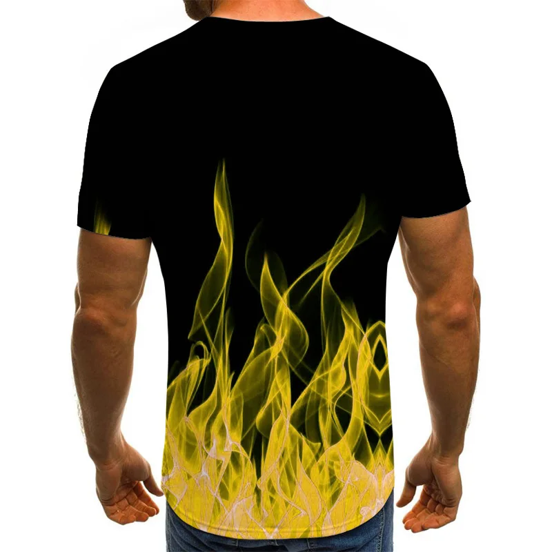 Мужская летняя футболка, новинка, футболка с 3D-принтом пламени, Му...