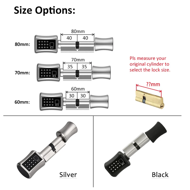 Разблокировка: приложение Tuya/отпечаток пальца/Пароль/ключЦвет: серебристый/черныйТип батареи: аккумулятор AAAЗамена батареи: СменнаяМатериалы: нержавеющая сталь 304 + алюминий + пластикКласс водонепроницаемости: IP44Автоматический замок: ДаФункция напоминания о низком заряде батареи: ДаРабочая температура: -30-60 градусов