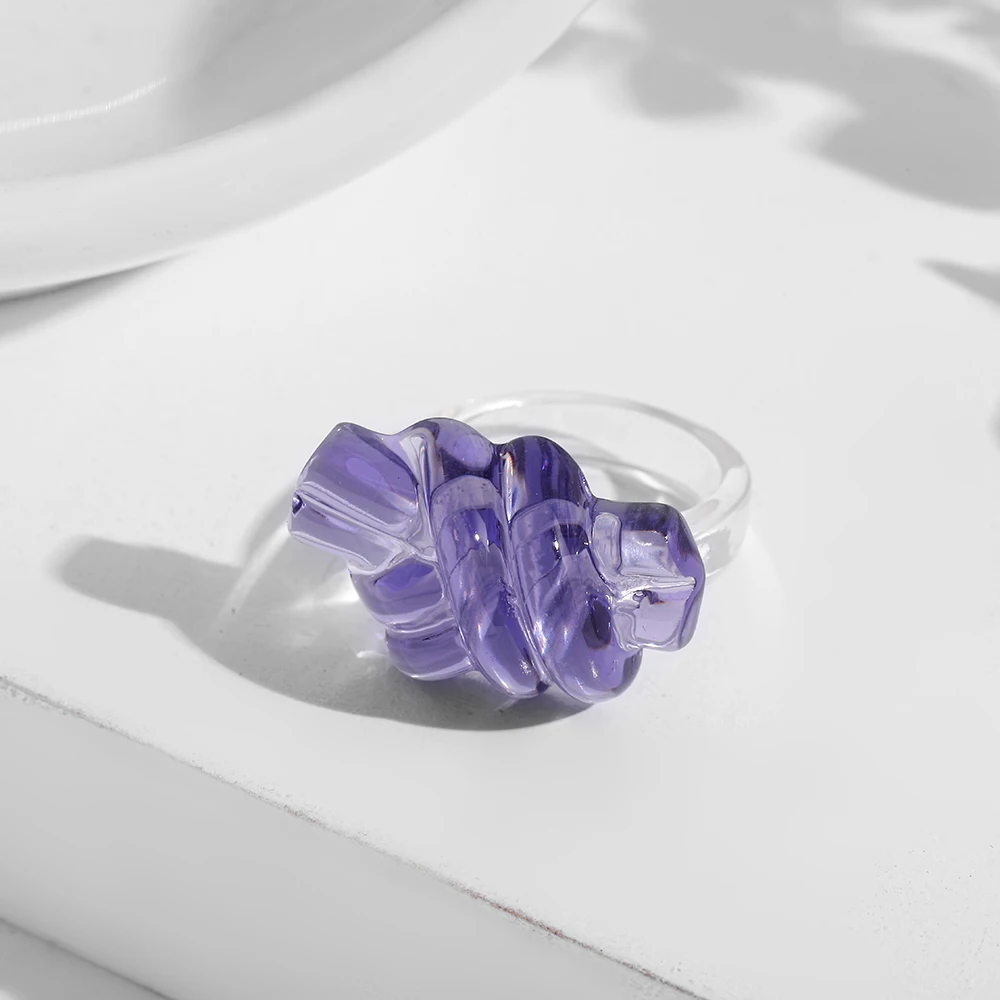Массивное кольцо с прозрачной акриловой смолой женское, стильное Ювелирное Украшение фиолетового цвета с геометрическим дизайном, круглой и квадратной формы, 2021