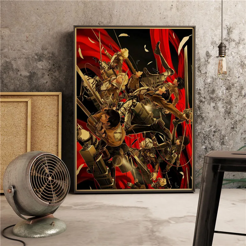 Японское аниме атака на Титанов, ретро мультяшная живопись, домашний декор, настенное украшение, качественный холст, художественный постер для гостиной