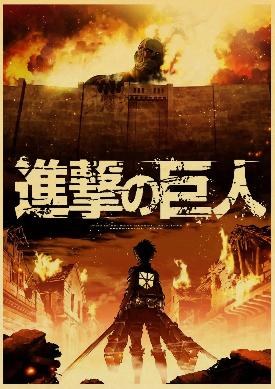 Японское аниме Атака Титанов, ретро постеры, Крафтовая бумага, наст...