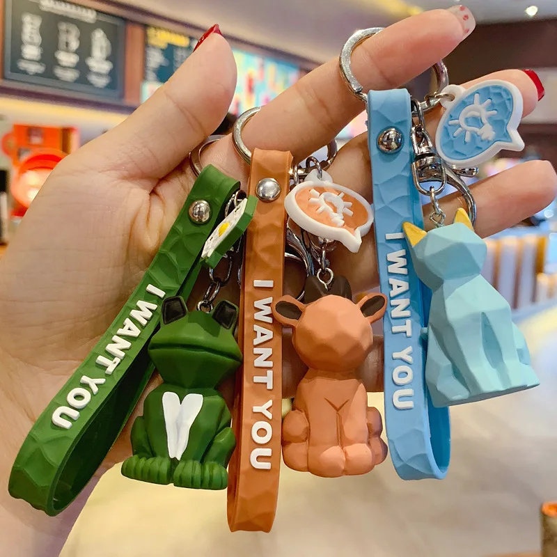 Брелок для ключей в форме динозавра, единорога, кролика, медведя, кота, для женщин, брелок с подвеской в виде животных, резиновая подвеска автомобильных ключей