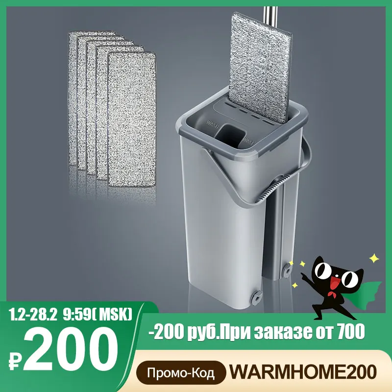Daris швабра с ведром отжимом, вращающаяся на 360 градусов Швабра для ленивой уборки пола без рук, с накладками из микрофибры