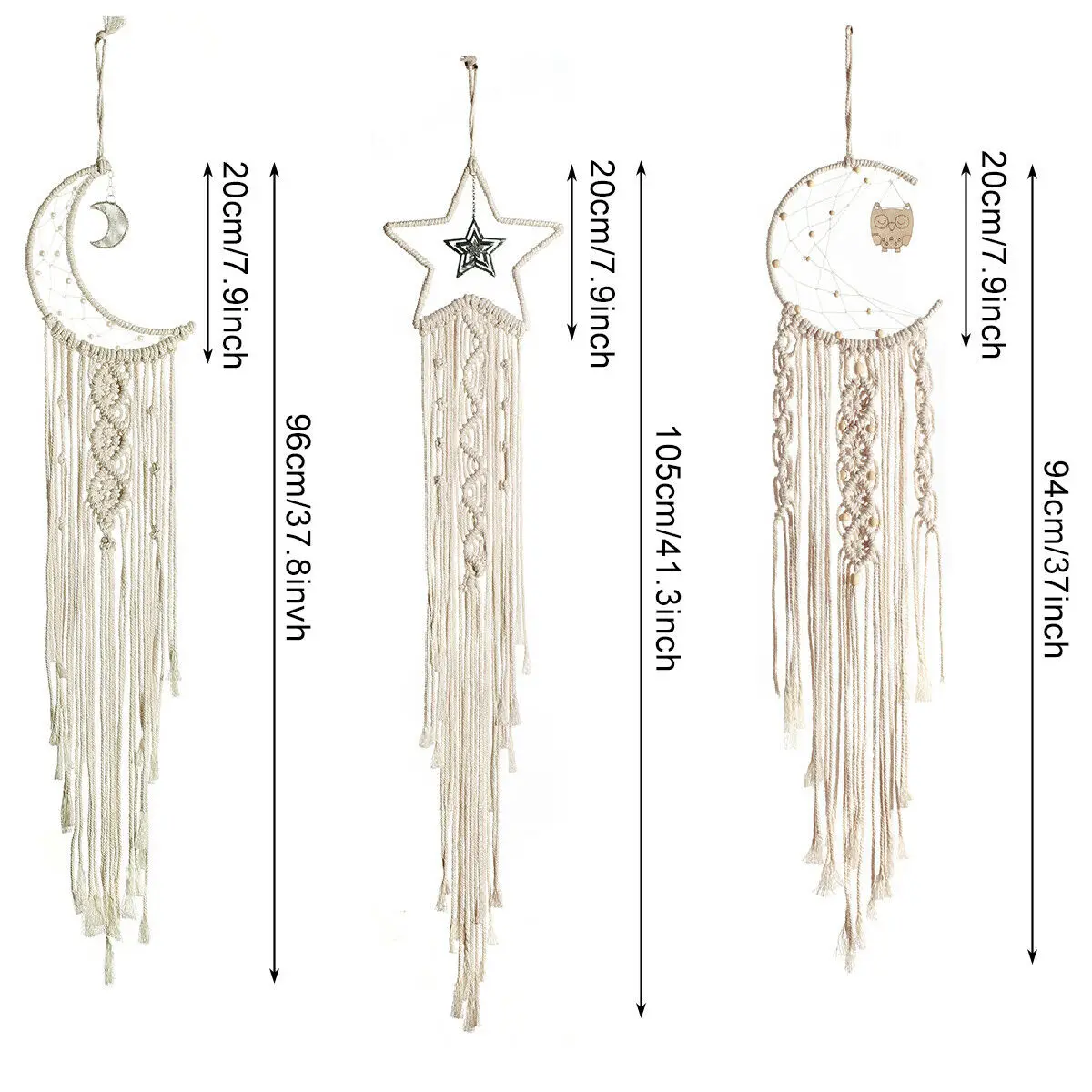 Нордический Бохо светодиодный Ловушка снов ручной работы Тканые ловушки снов Луны с светодиодный светильник из хлопка макраме настенная подвесная комната украшение для дома