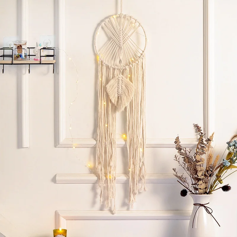 Скандинавский Ловец снов в стиле бохо, тканый Ловец снов ручной работы, Ловец снов светодиодный светильник кой, хлопковое макраме, настенное украшение для комнаты, для дома