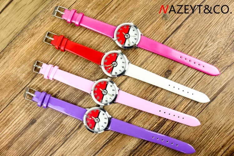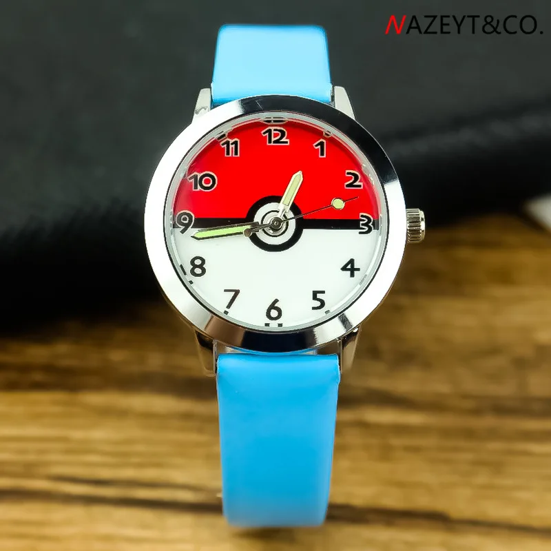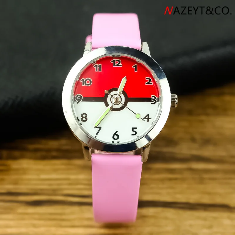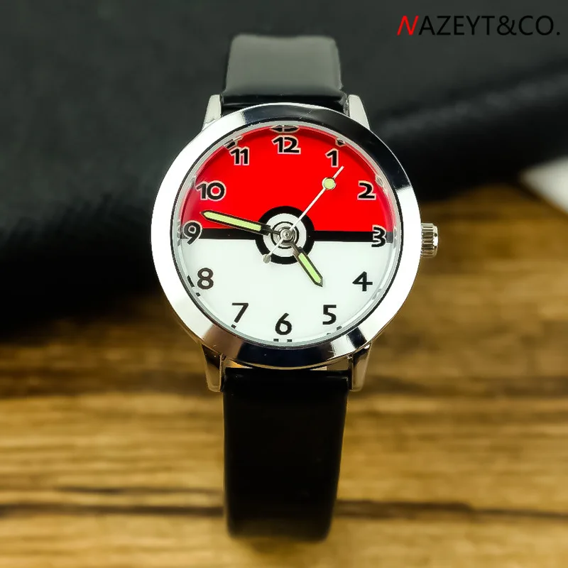 Покемон Пикачу детские часы мультфильм аниме фигурка покебол PU рем...