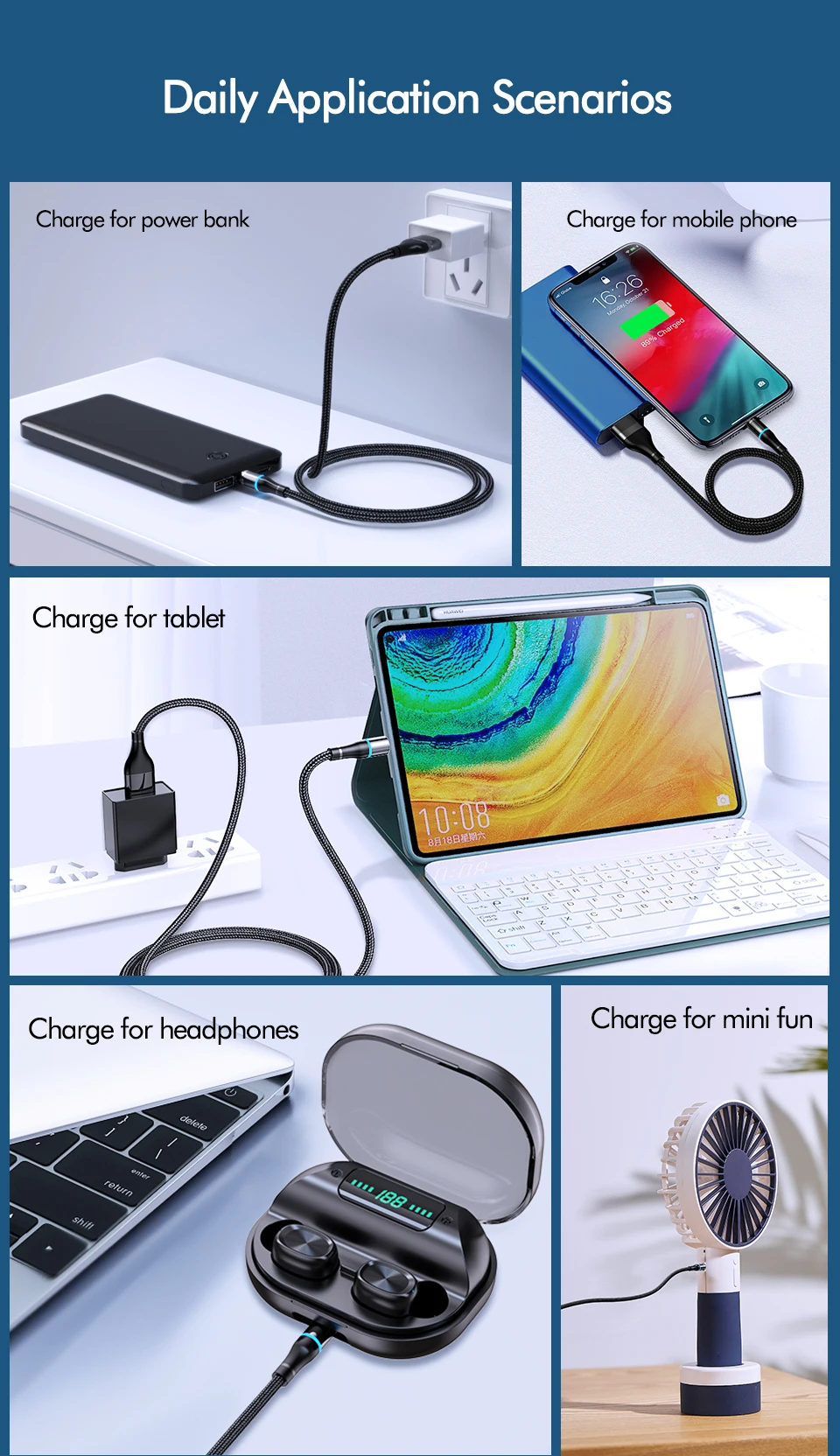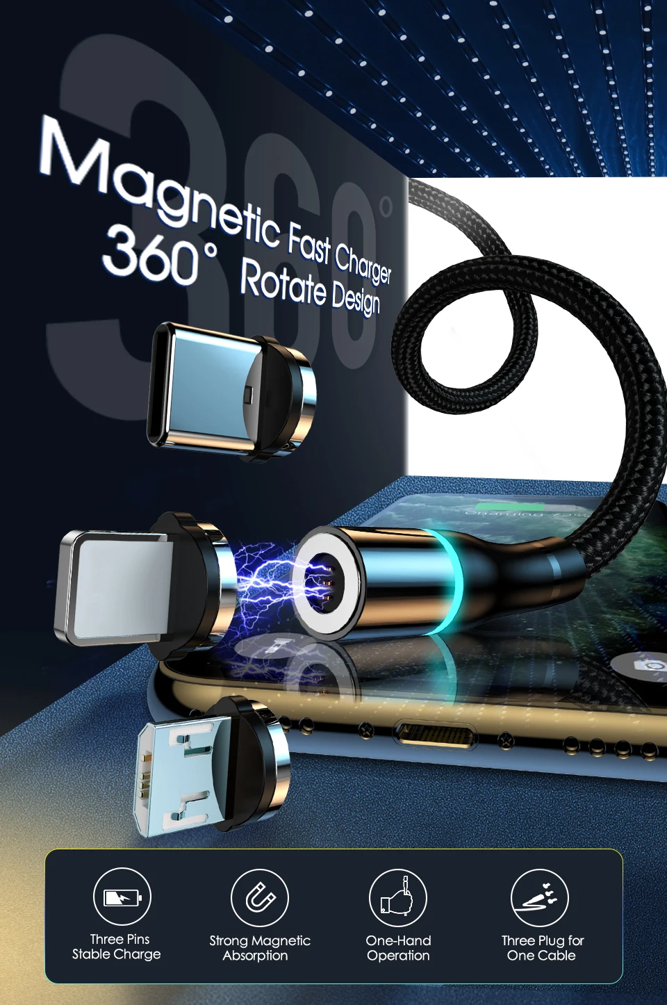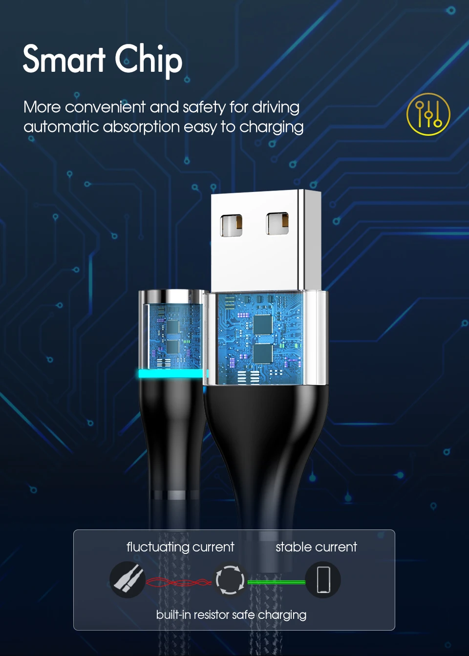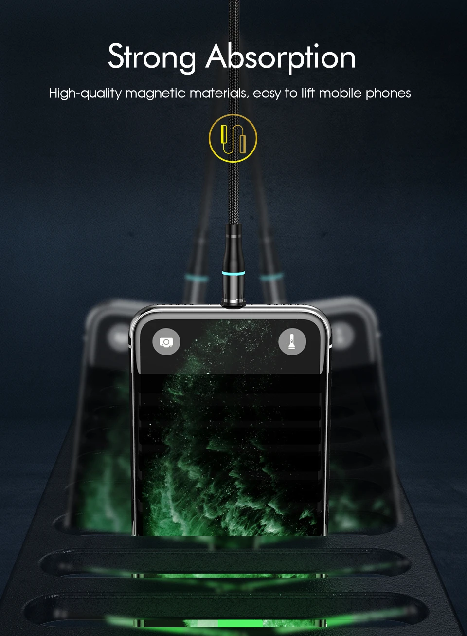 Магнитный кабель YKZ USB Type-C, Micro USB, со светодиодной подсветкой, для быстрой зарядки и передачи данных, для iPhone 12, 11, мобильный телефон