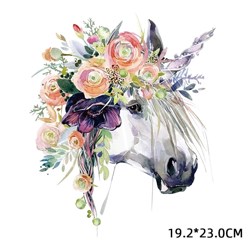 Цветы, Симпатичные единороги, животные, термонаклейки для самостоят...