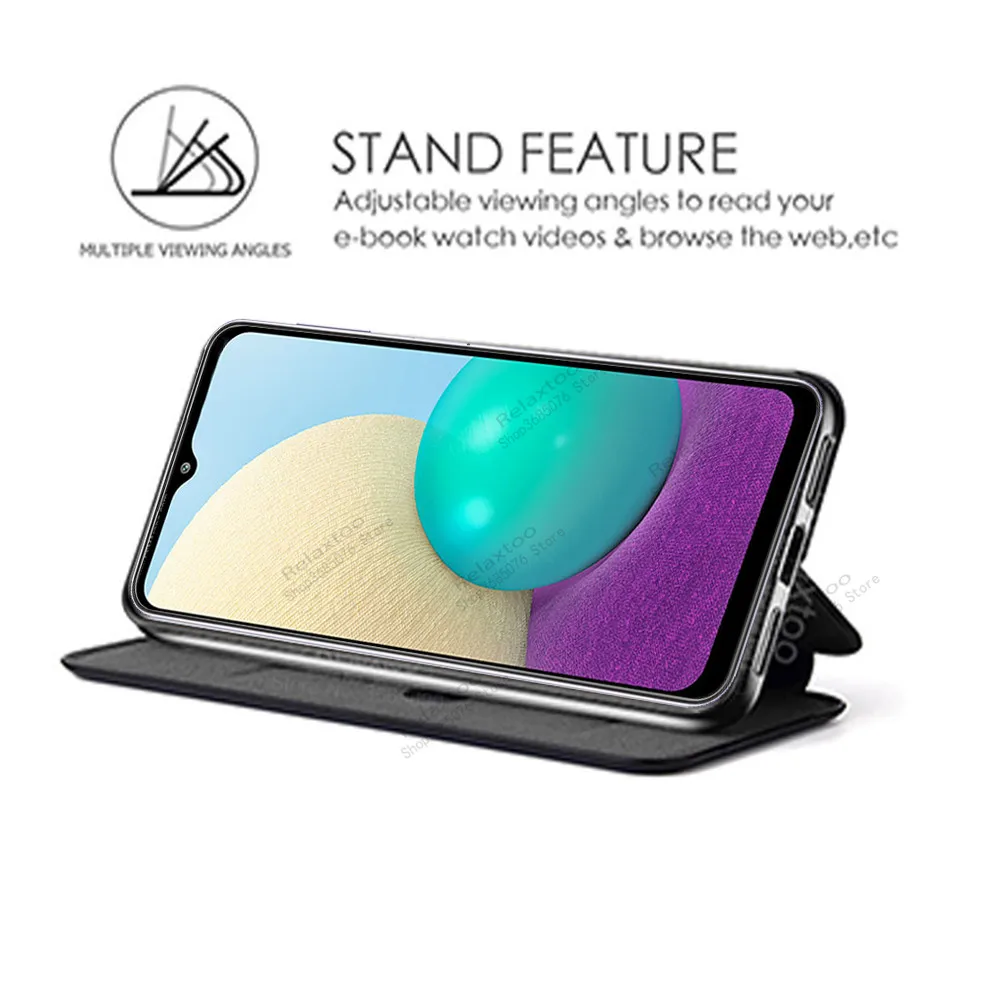 Кожаный флип-чехол для samsung galaxy a02s, чехол-книжка с подставк...
