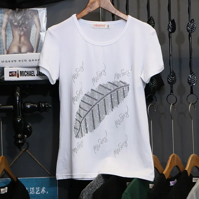 Женская футболка с коротким рукавом, свободная хлопковая рубашка с принтом, стразы, пуловеры, лето 2021