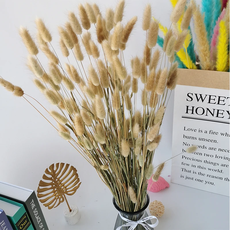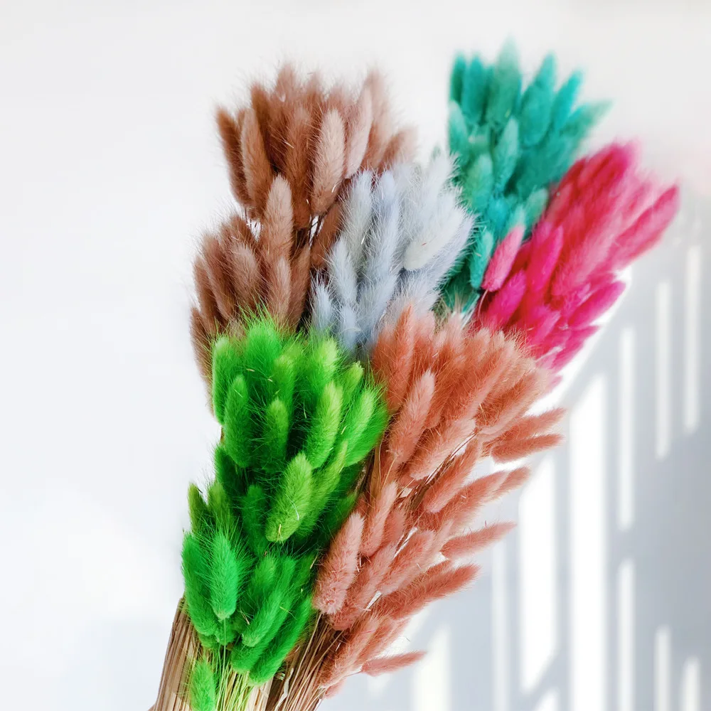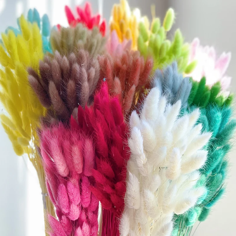 Высушенные цветы, трава для собак, Натуральные Цветные букеты с хвостом кролика для украшения дома, свадьбы, брака, 10 шт.