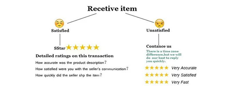Если вы удовлетворены нашей продукцией и обслуживанием, пожалуйста, помогите оставить «положительные отзывы» и «5 идеальных звезд» для нас, когда вы получите свои товары, и мы сделаем то же самое для вас. Заранее спасибо!