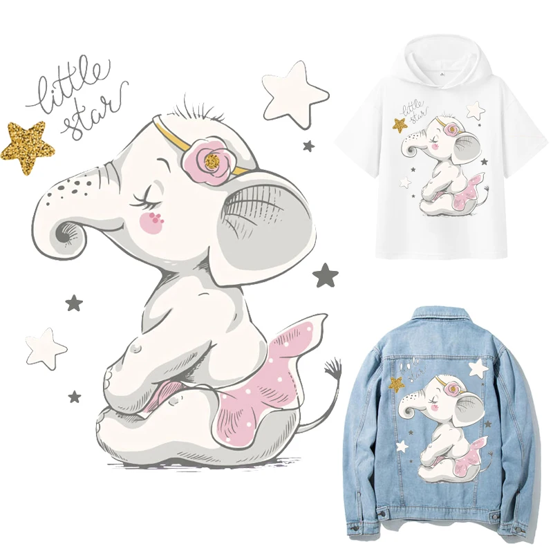 Термоклейкие нашивки со слоном из мультфильма сделай сам, термоклейкие Переводные нашивки для одежды, Детские термонаклейки с аппликацией животных
