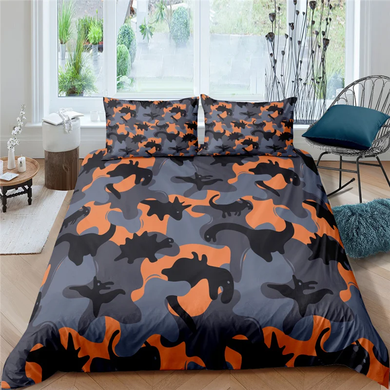 Комплект постельного белья с камуфляжным принтом динозавра 23 шт. удобный пододеяльник с животным рисунком наволочка 3D домашний текстиль размер QueenKing