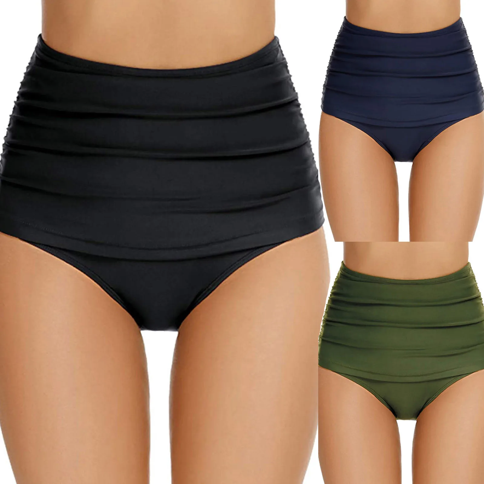 Шорты женские пляжные с завышенной талией, купальный костюм с рюшами, трусы-плавки для контроля живота, базовые плавки, 2021