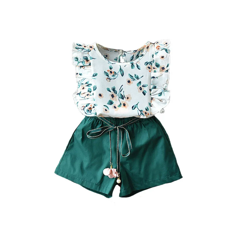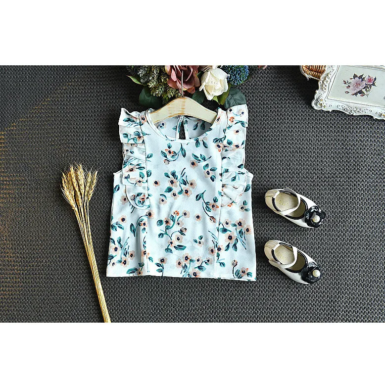 Комплект одежды для девочек, летняя футболка без рукавов с цветочны...
