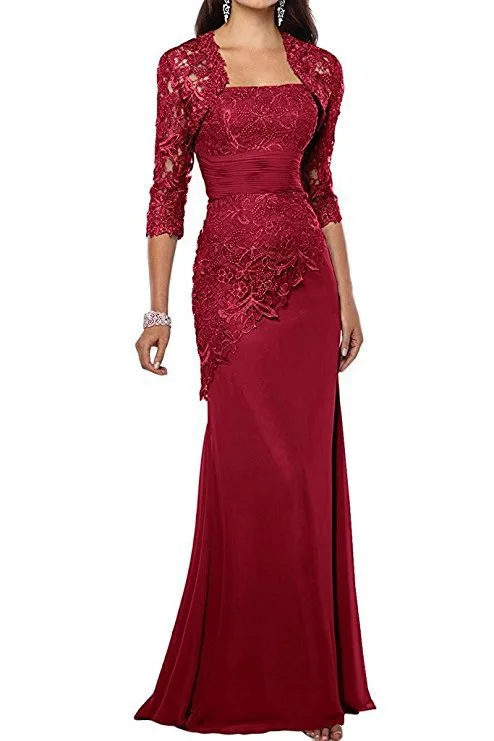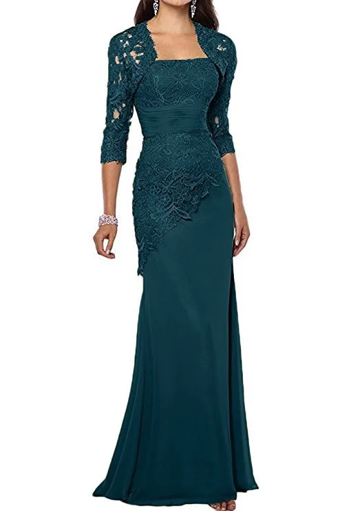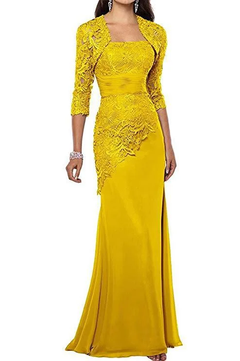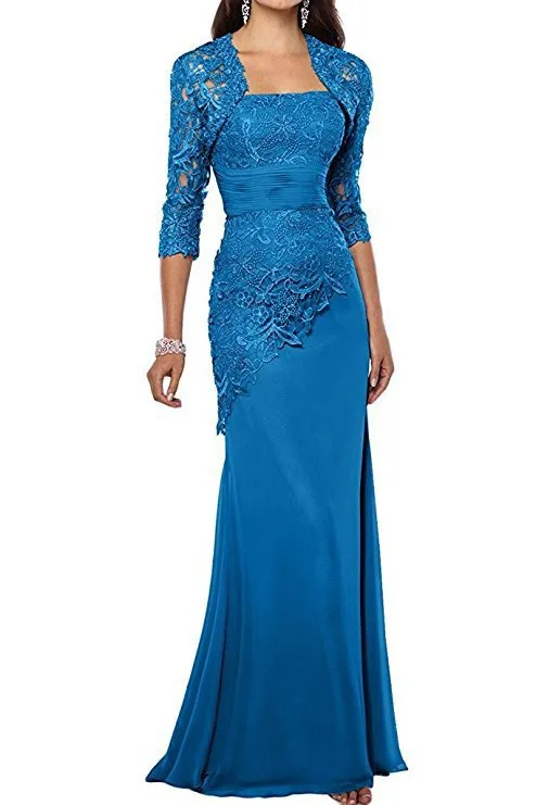 Новинка шифоновые кружевные платья для матери невесты с жакетом аппликация три четверти длинные рукава Русалка Вечерние платья для матери 2021