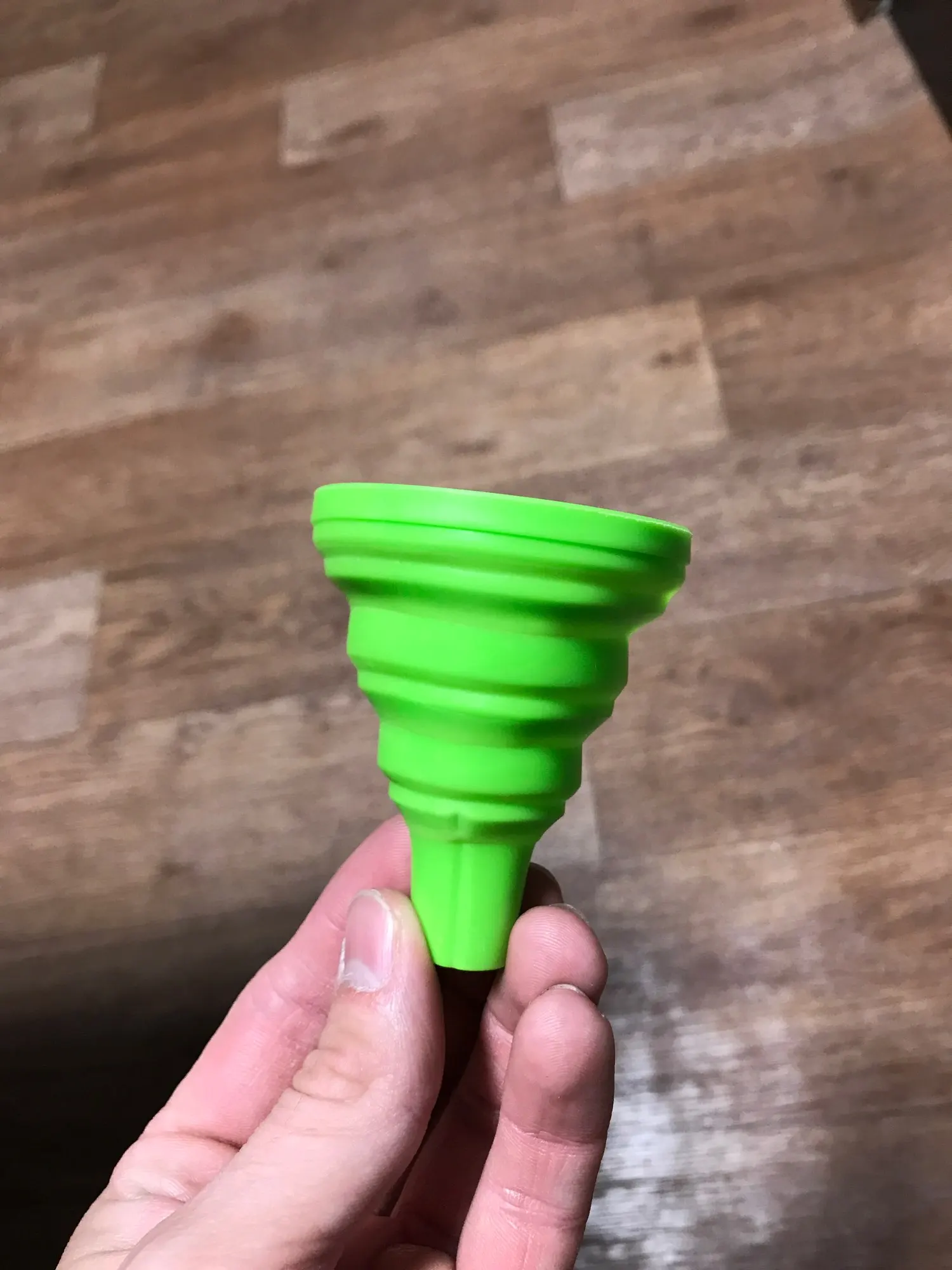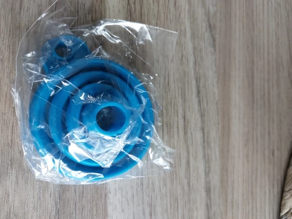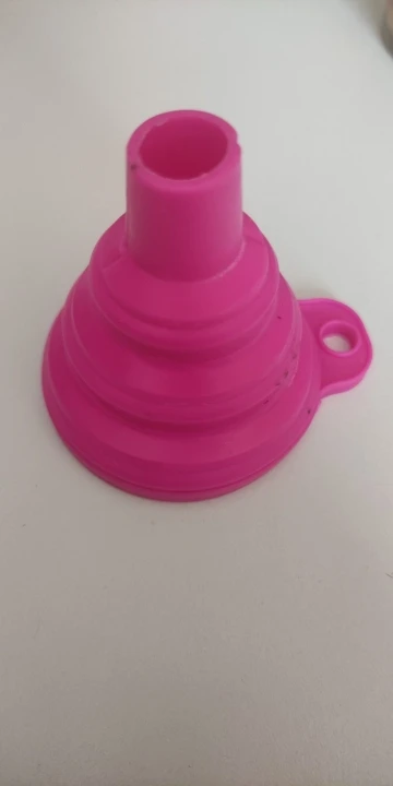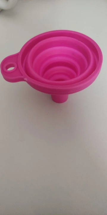 Заказ пришел невероятно быстро в объединённой посылке. Интересная воронка, маленькая, диаметр 5,3см. Внизу диаметр ответстия великоват, 1,6 см. Складывается. Места занимает минимум.