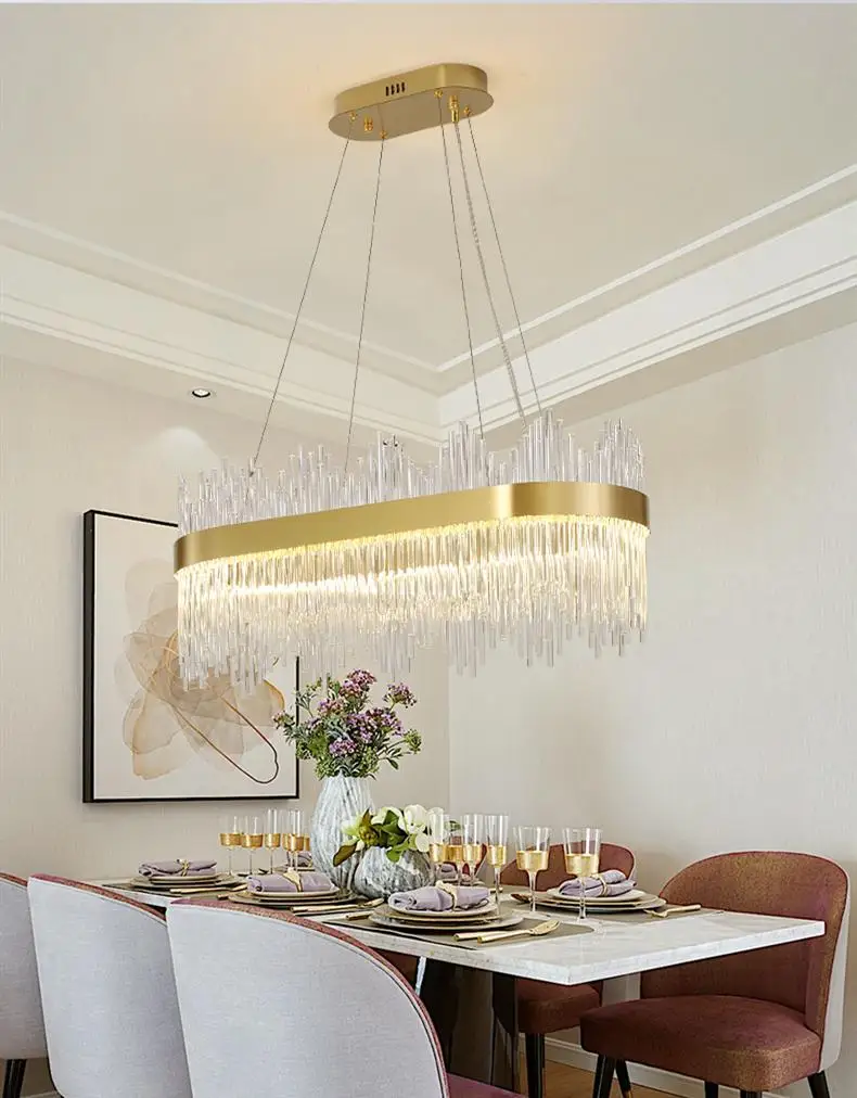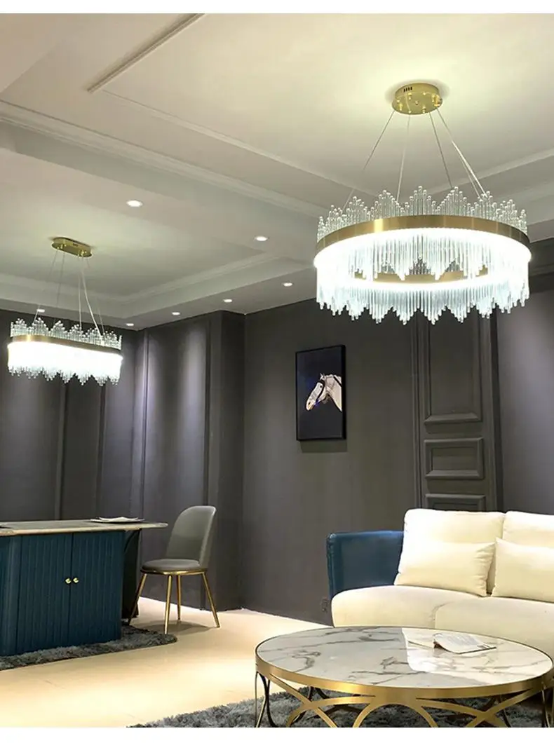 2021 Современная круглая хрустальная люстра для столовой Прямоуголь...
