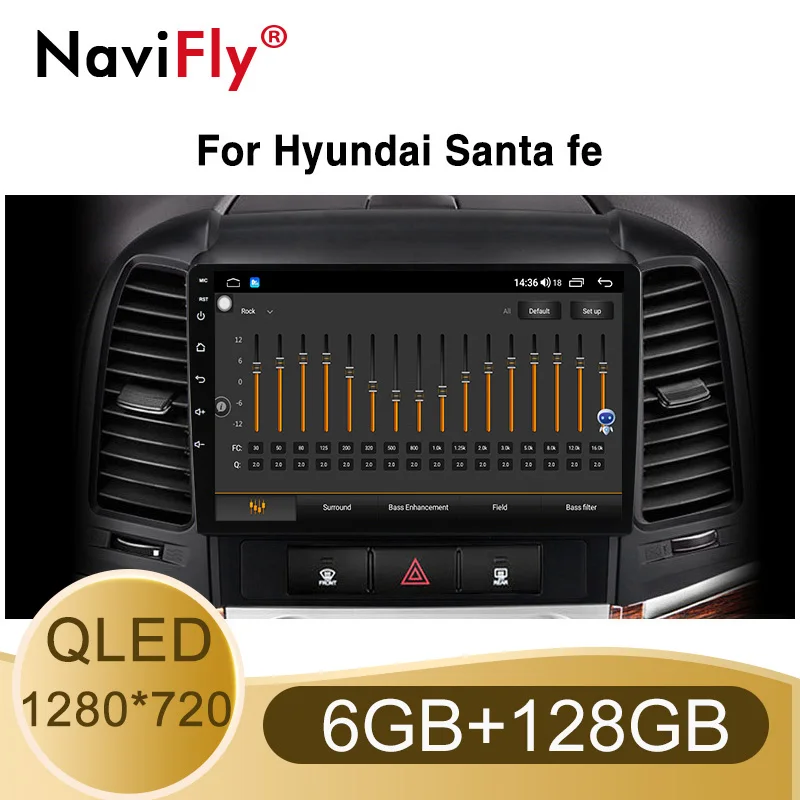 NaviFly 7862 серии 6 ГБ + 128 ГБ Carplay QLED 1280*720 Android все-в-одном Автомобильная интеллектуальная система для Hyundai Santa Fe 2 2006 - 2012
