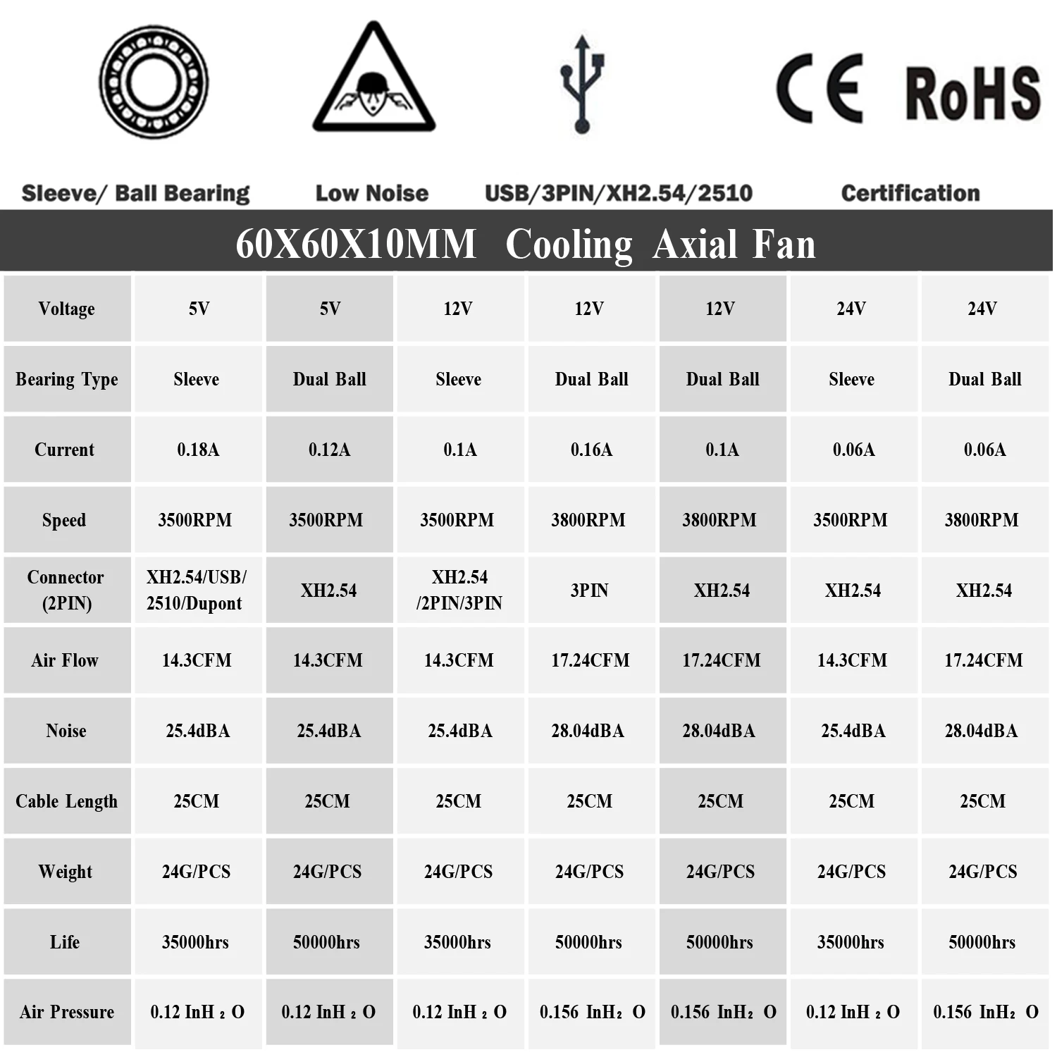 Вентилятор Gdstime, 6 см, 5 В, 12 В, 24 В, 6010, 60x60x10 мм, 60 мм
