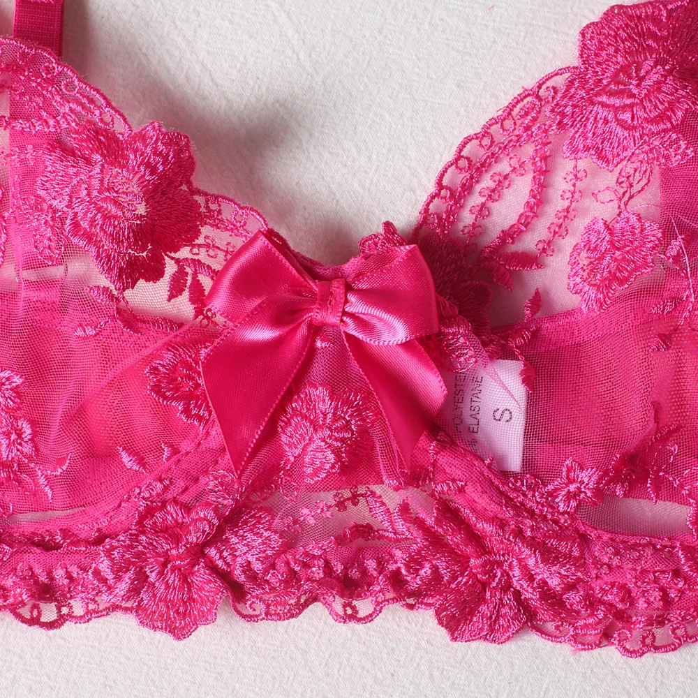 Сексуальное женское нижнее белье, тонкий прозрачный кружевной комплект с бюстгальтером пуш-апКомплект из 3 предметов: бюстгальтер с вышивкой + подвязки + стрингиПрозрачная Нижнее белье