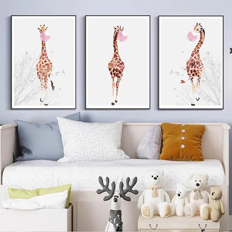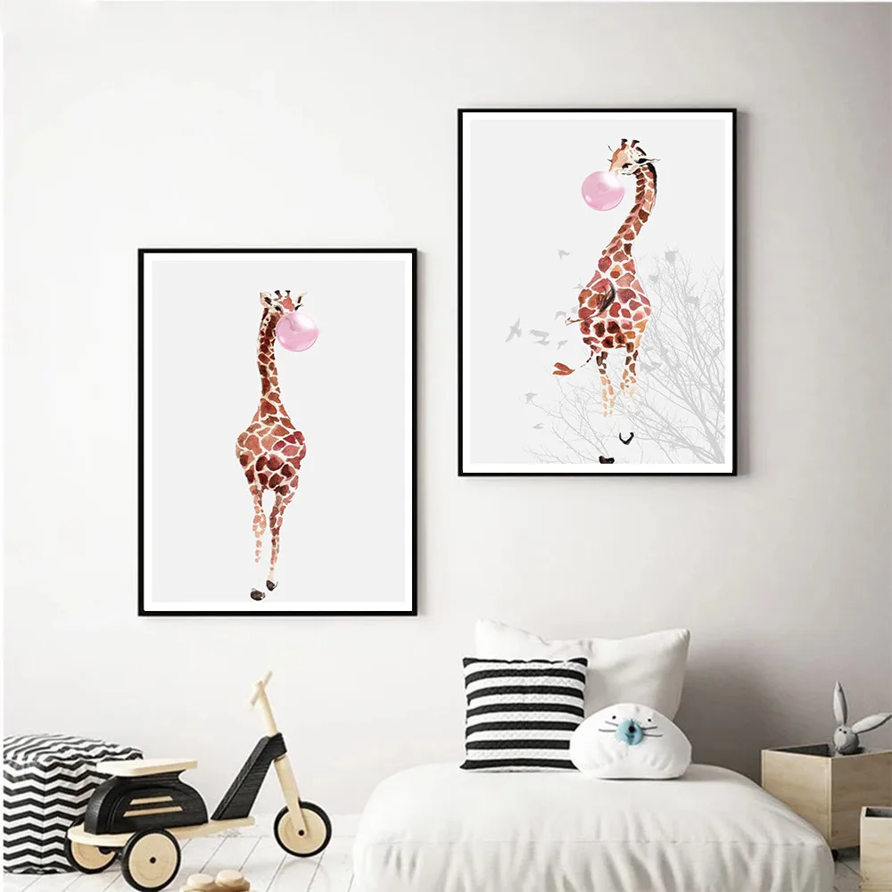 Картина в скандинавском стиле, с изображением розовых пузырей, плакаты с изображением жирафа