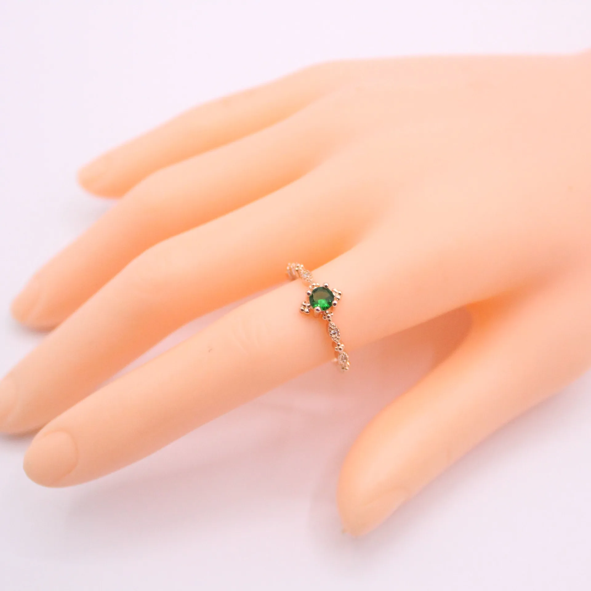 Простое розовое золото зеленый драгоценный камень кольцо очарование...