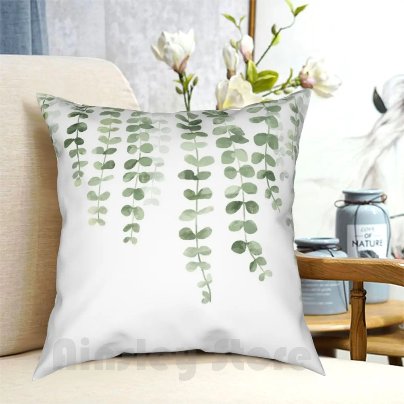 Эвкалипт акварель Подушка Чехол с принтом домашняя мягкая подушка DIY крышка растение лозы листьев травы фон с листьями