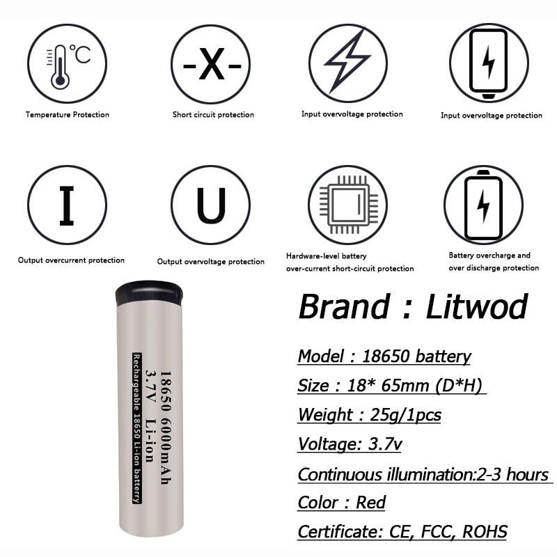 Переключатель: кнопочный переключательЦвет: черныйСветильник: высокий/низкий/стробоскопическийСрок службы более: 100000 часовЗум: Телескопический масштабируемыйВодонепроницаемость: IPX5, не поддерживают погружение.Аккумулятор: 1x18650Материал: алюминиевый сплав